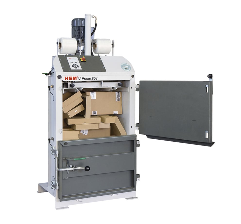Sie reduziert das Volumen von Papier- und Folienabfällen. Dadurch wird das Transportvolumen und damit der beim Transport anfallende CO2-Abdruck deutlich reduziert und ermöglicht eine einfache Rückführung in den Wertstoffkreislauf.